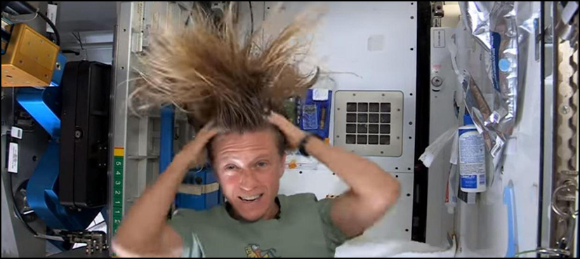 It’s totally a different story. Washing hair in zero gravity is a precarious business – but it needs to be done.