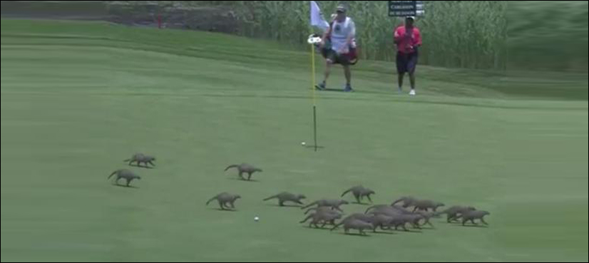 “About 20 mongoose invade the green…But they know not to interfere with the ball,” the European Tour wrote.