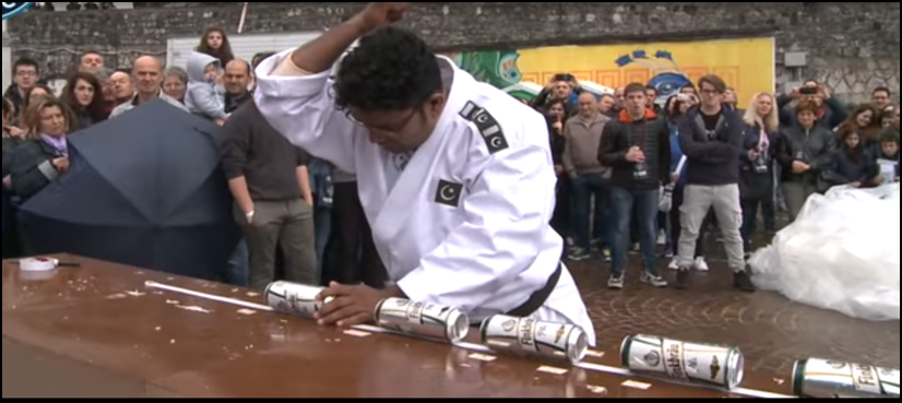 ROME: Muhammad Rashid, a martial artist from Karachi set a world record by crushing nearly 80 drink cans using his elbow.