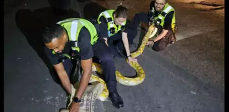 The West Midlands Police in the United Kingdom (UK) captured a huge 12-foot yellow python roaming the streets and shared their adventure on Instagram.
