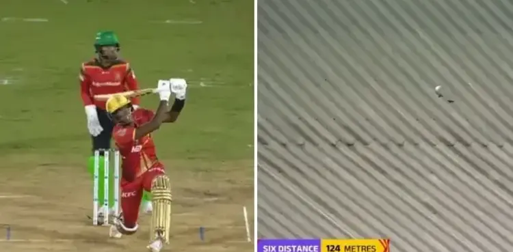 The sheer power generated from the bat swing sent the ball over the roof and had a distance of 124 meters, one of the biggest sixes in the CPL 2024.
