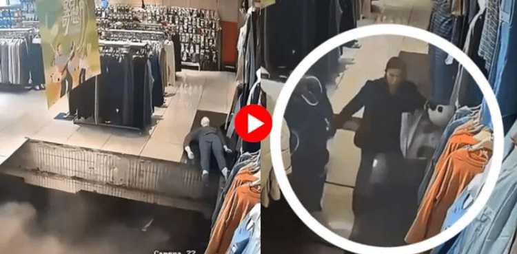 The viral video uploaded on Instagram shows a customer being swallowed up by the floor after stepping across the ‘weak’ tile.