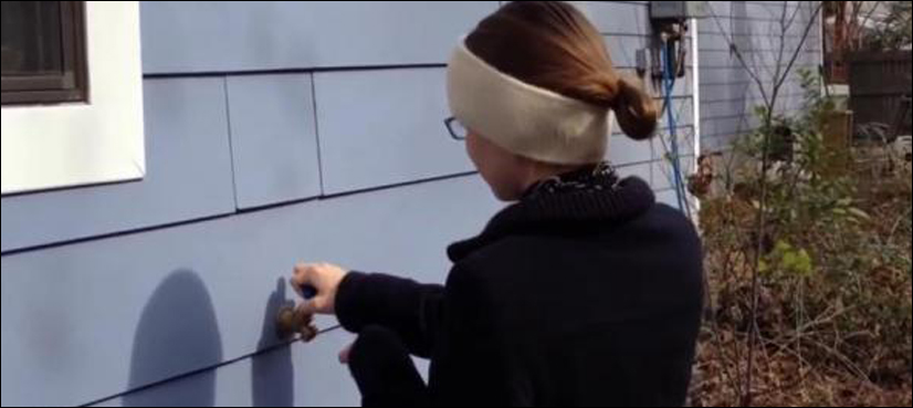 The couple said they wanted to try something unusual with the side door of their home, so they covered it in siding identical to the external wall and installed a hose tap to function as a doorknob.