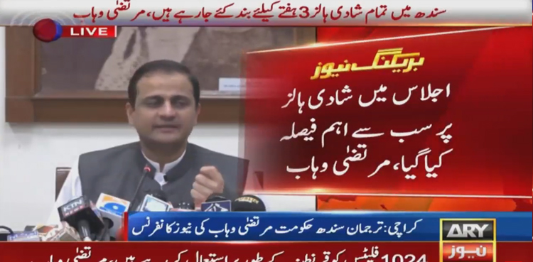 We are not imposing a ban on marriages, the wedding events can take place in homes or other places in a simple way with limited gathering,” explained Murtaza Wahab on a decision of closing marriage halls across Sindh.