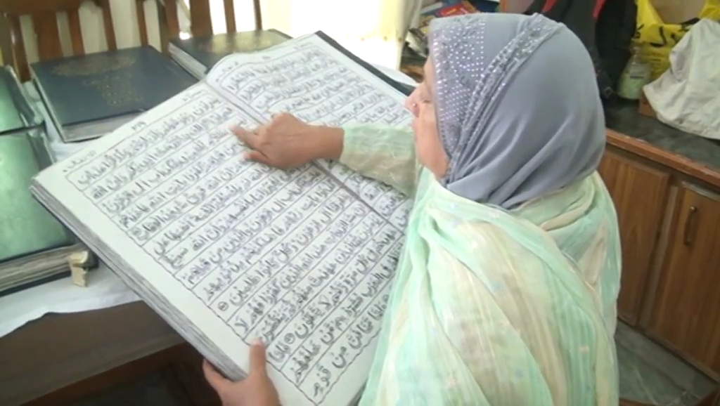 Gujrat: Naseem Akhtar, belonging to a small town in Gujrat, spent 32 years of her life making a hand embroidered Quran which she claims is the only hand embroidered Quran in the world.
