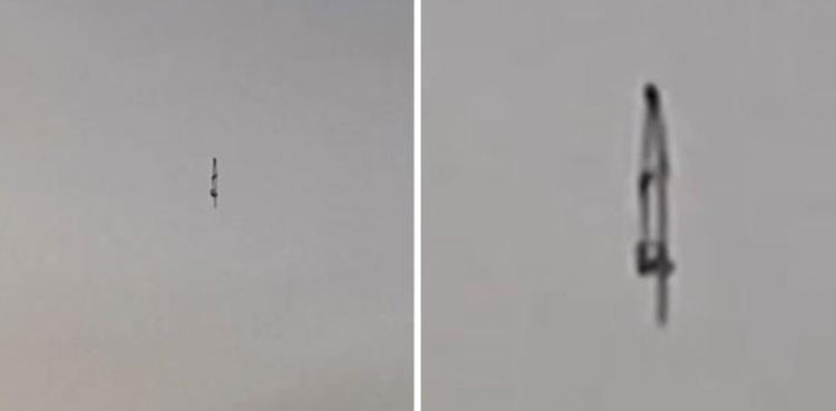 Aiyana recorded the footage from the roof of her home in Chicago. The video shows a long black wishbone shape hanging in the air, with both its wings ending in some sort of sphere.