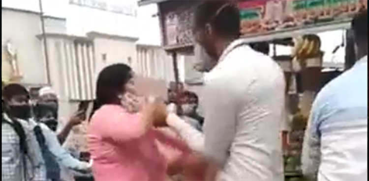 A woman has been captured on camera slapping, kicking, and pulling hairs of an official after being issued a challan over violating COVID-19 SOPs in India.