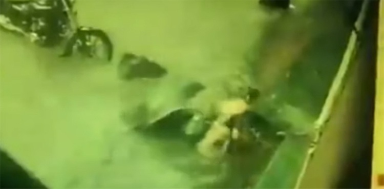 The incident occurred in Mumbai’s Bhandup district, where a road was submerged after heavy rain lashed parts of the metropolis.