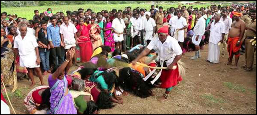 TAMIL NADU: A bizarre video from a village in India’s Tamil Nadu state is doing rounds on the internet showing hundreds of women lined up to get whipped by priests so as to “drive evil spirits away,” as part of a peculiar annual.