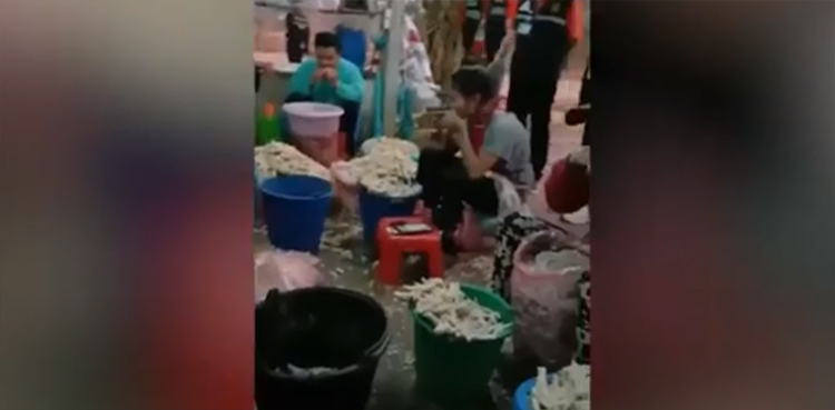 WATCH: Factory workers use mouth to strip bones off chicken feet