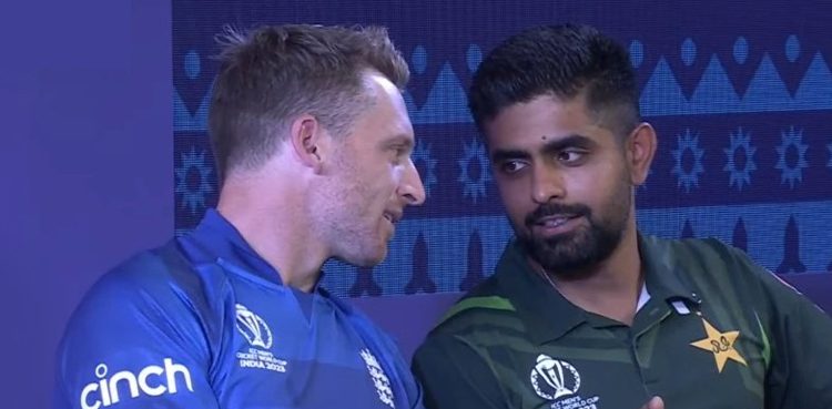 A hilarious moment between Pakistan captain Babar Azam and his England counterpart Jos Buttler was caught during the ICC Captain’s Day event ahead of the ICC Cricket World Cup 2023.
