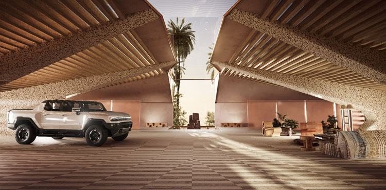 As interest in virtual design continued, American interior designer Kelly Wearstler revealed a virtual garage in the desert that she imagines housing basketball player LeBron James’ electric Hummer.