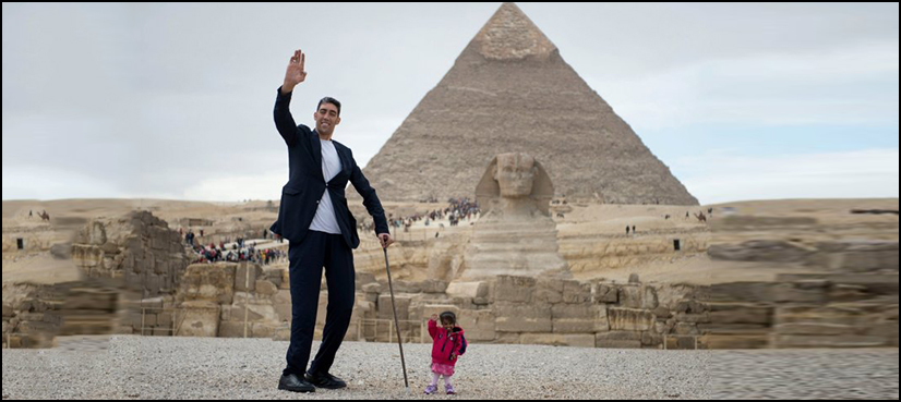 The world’s tallest man from Turkey is once again hogging the limelight, but this time alongside the world’s shortest woman when they met each other in front of the pyramids in Egypt.