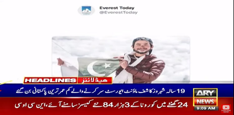 ISLAMABAD: A 19-year-old Pakistani has become the youngest countryman to scale the world’s largest mountain above sea level, Mount Everest, ARY News reported on Tuesday.